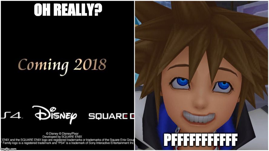 Watch it? Yeah, pretty freaking sweet. I can't wait to become knockoff LEGO Sora. Now you know why I'm so hyped. Every trailer that comes out builds my excitement more and more. I don't really believe it's coming out in 2018 though. I'm thinking March 2019 at the very earliest. Start placing your bets now people. Anyway I need to ventilate some of this steam somehow so I dug up some memes to brighten the mood. Trust me. If you're saddened by the thought of a delay just these twenty-five entries to make your cares go away.